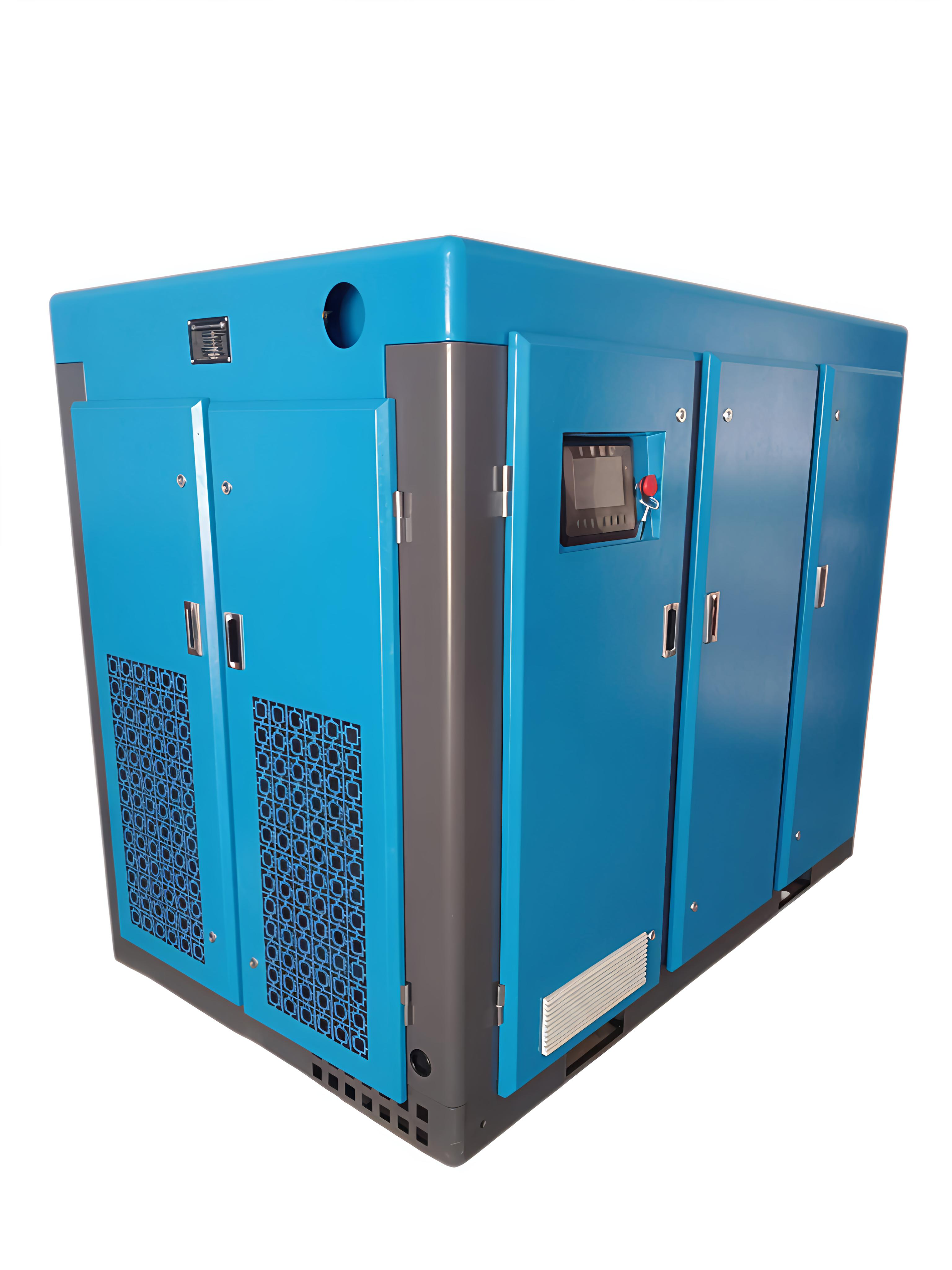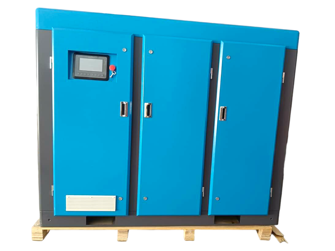 A Two Stage Screw Air Compressor is an advanced industrial air compressor designed to deliver higher efficiency and lower energy consumption compared to single stage compressors. In a two-stage compression system, air is compressed in two steps which improves performance, reduces heat generation, and increases overall reliability. 1Way Air Solution offers high performance Two Stage Screw Air Compressors built with advanced airend technology for maximum energy savings and long operational life. These compressors are ideal for industries requiring continuous and stable compressed air supply. Two stage compressors provide better efficiency, lower power consumption, and higher air output, making them suitable for heavy-duty industrial applications. Key Features • Two stage compression for higher efficiency • Lower energy consumption compared to single stage compressors • Stable air pressure output • High efficiency airend technology • Low noise and vibration operation • Long service life and reliable performance • Intelligent control system